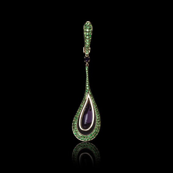 Earrings(Tsavorite 17.25 carats, Black Diamond 0.20 carats, Amethyst 4.54 carats)